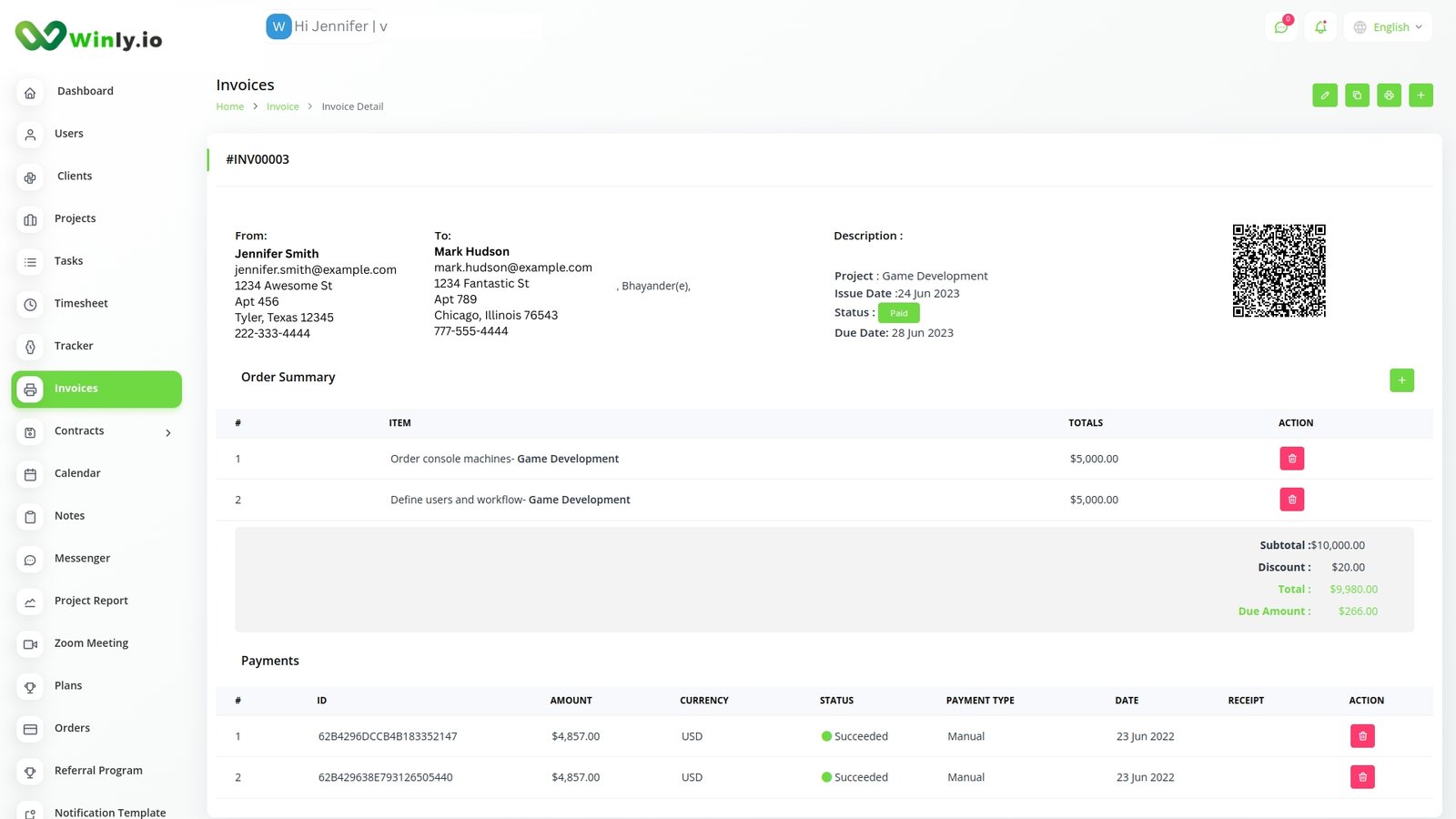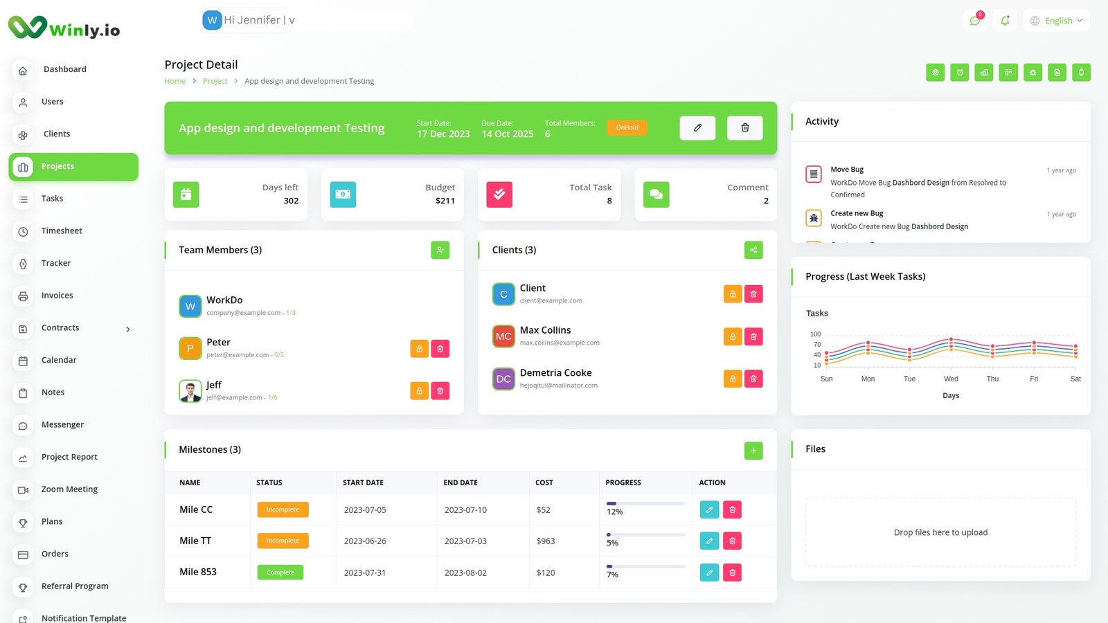 Create projects & workspaces, add team members, send your clients invoices and get paid, instant message your team, track milestones, manage employees hours, approve leave requests… all with Winly.io